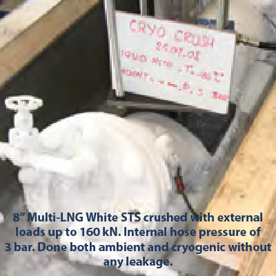 The qualification program essentially covers, strength and stiffness of the Multi- LNG White STS hoses, fatigue due to bending and thermal cycles and flow and damage tolerance. Tests are performed at both ambient and cryogenic conditions.